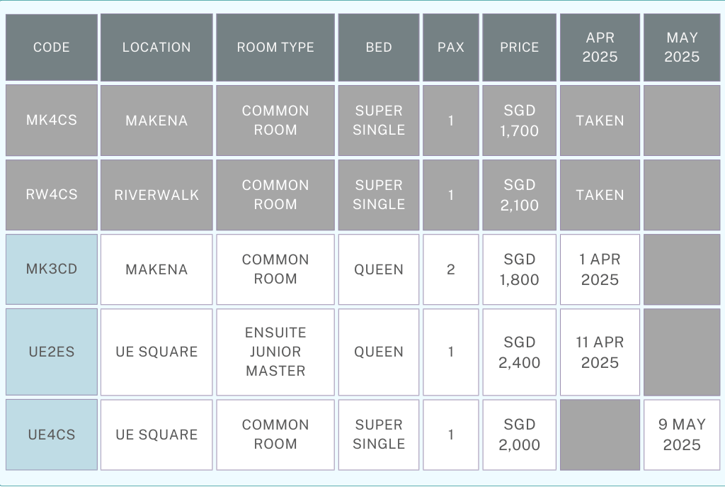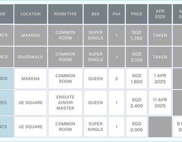 2 Coliving rooms are currently available in the city's prime locations: Riverwalk Apartments and The Makena. WhatsApp Now